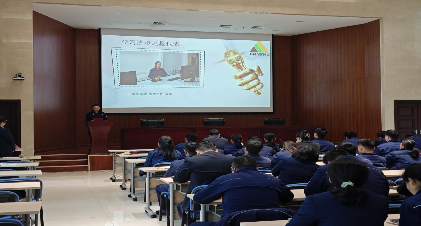 文化之星代表肖鹏飞、袁越发言时,感恩金能公司为员工提供的成长舞台。他们郑重承诺:今后会把这份认可作为新的起点,在专业上持续精进,用更扎实的技能保障生产;在实干中坚守初心,用更务实的态度对待每一项任务;在文化建设上接续发力,凝聚共识。继续以专业为基、以实干为要、以文化为桥,在各自的岗位上发光发热,与团队共成长、与公司共发展。